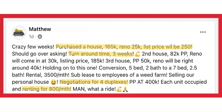 And as a result… This frees you up to spend less time stressing over numbers, and more time locking down profitable deals that build long-term wealth.