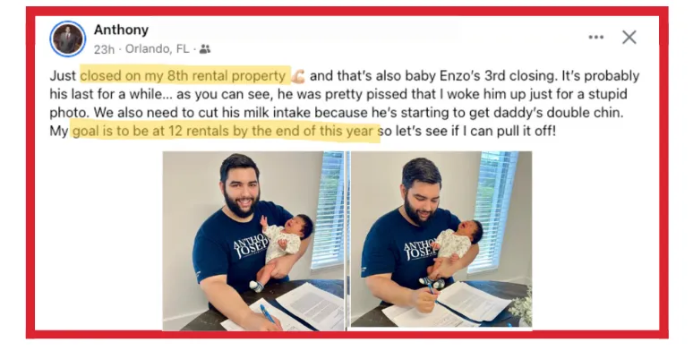 Join our exclusive Facebook Group of serious real estate investors who are actively growing their businesses, sharing tips, and supporting each other on their journeys.