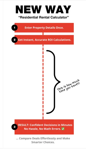 The Residential Rental Calculator is a done-for-you spreadsheet tool built exclusively for real estate investors. Instead of juggling calculators, complex formulas, or scribbled notes, you can use this all-in-one system to input your deal numbers and instantly see clear, accurate results. It’s a straightforward solution that saves you time, reduces errors, and helps you make smarter investment decisions.