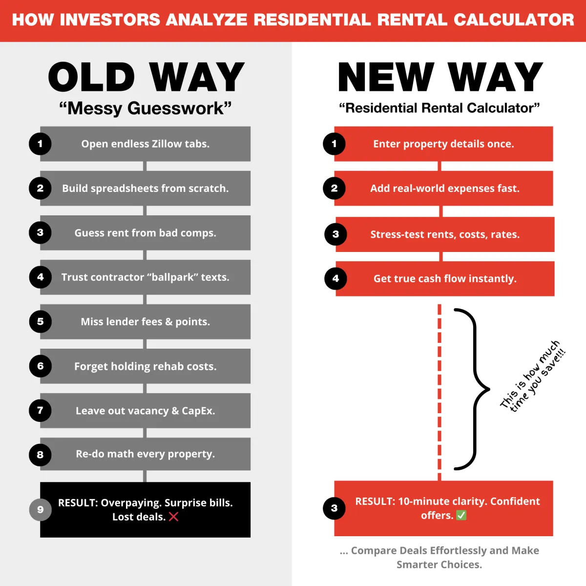 The Residential Rental Calculator is a counterintuitive approach to deal analysis that gives you instant clarity on whether a rental property will actually make money or bleed you dry.