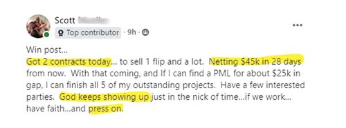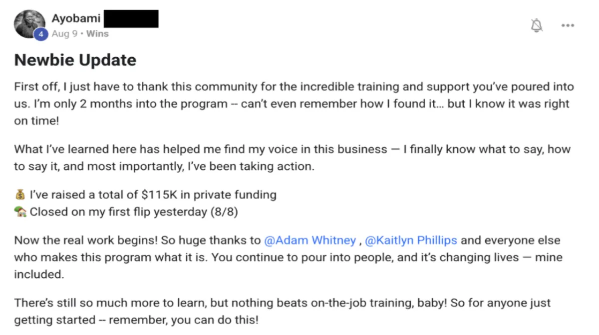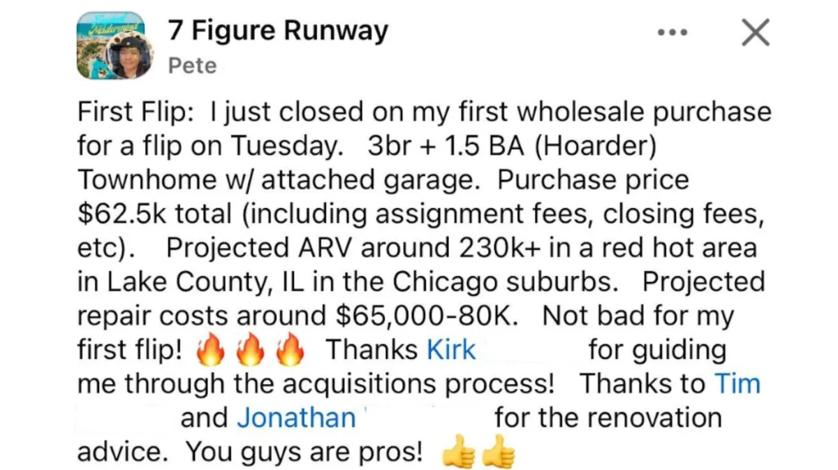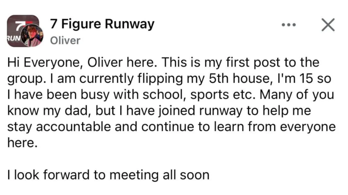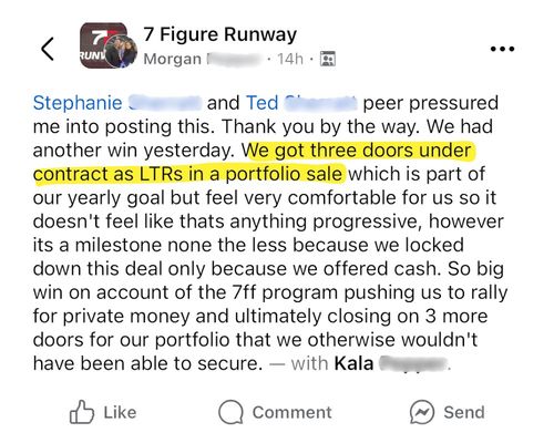 7F Runway is designed for early-stage real estate operators (or serious beginners) who are done dabbling and ready to start making real money. If you’re only here to brag about deal count or revenue (but not your net profit), this isn’t your community. But if you’re serious about taking action and want to build this right, Runway might be the right place for you.