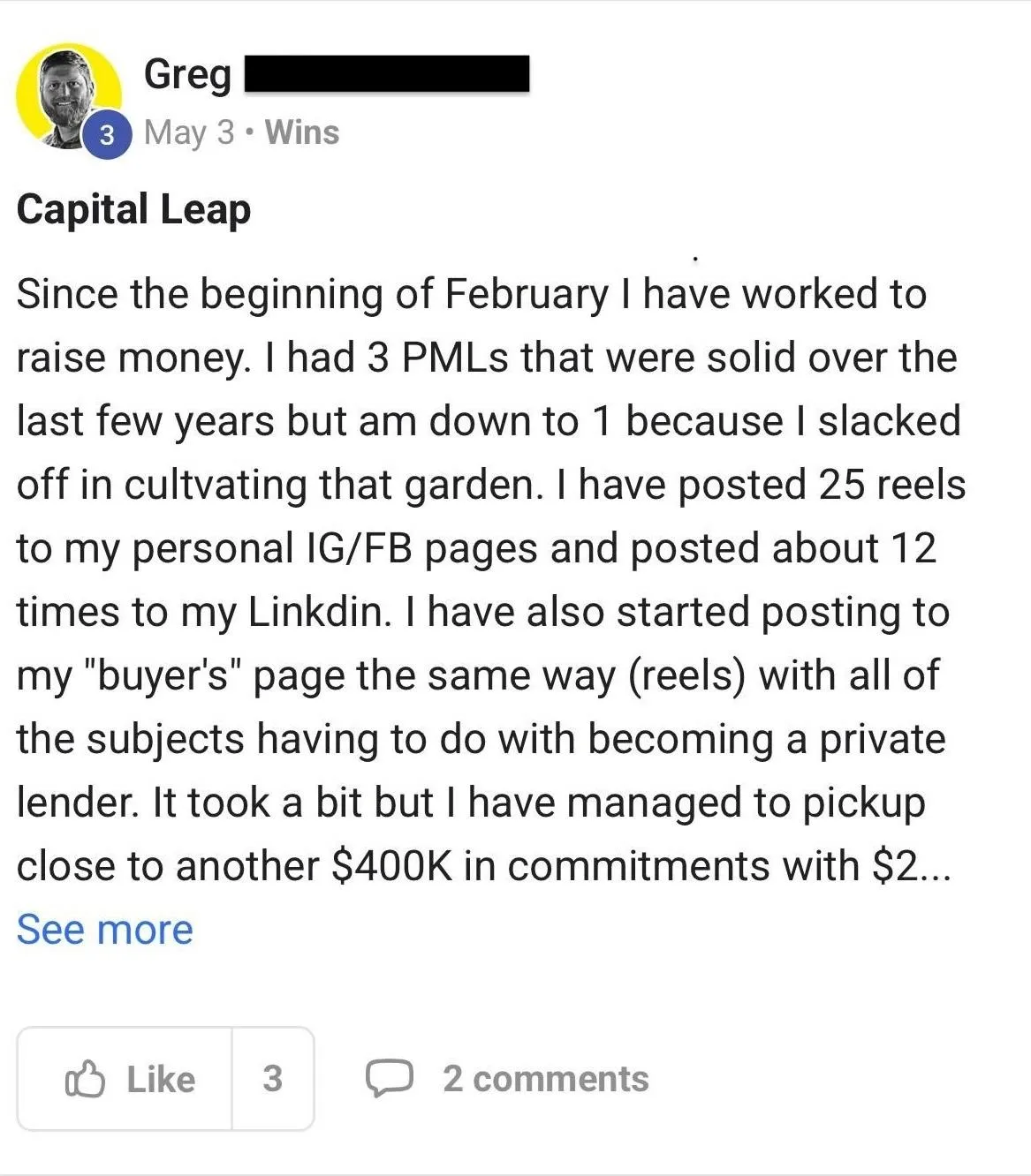 It's really grown our business from one level to the next. We've done many, many flips and multifamily deals with the money raised using Bill’s techniques. The reason I like to learn from him is because he's active in it. He's actually doing this stuff today, raising money himself. To learn from him is so valuable!