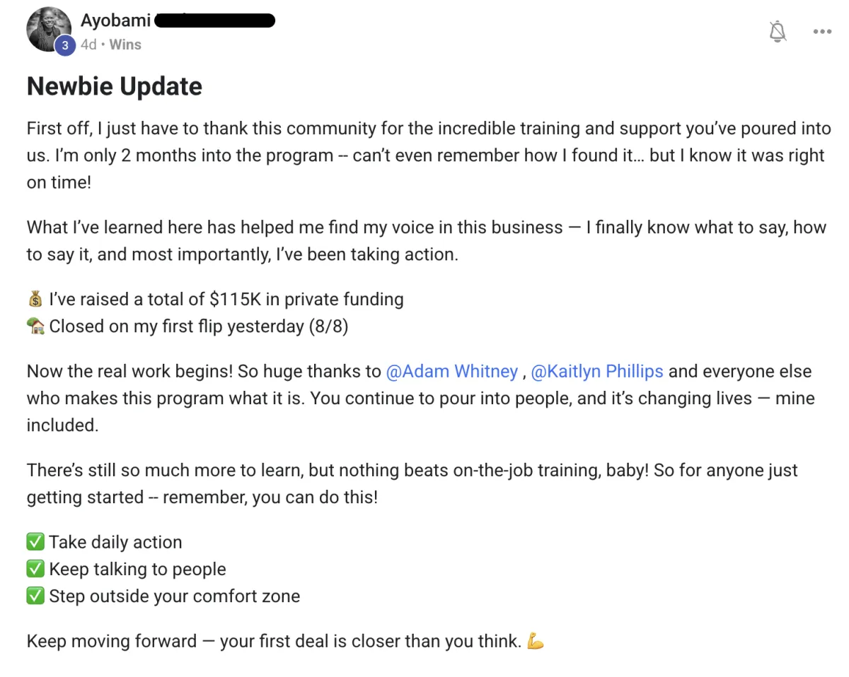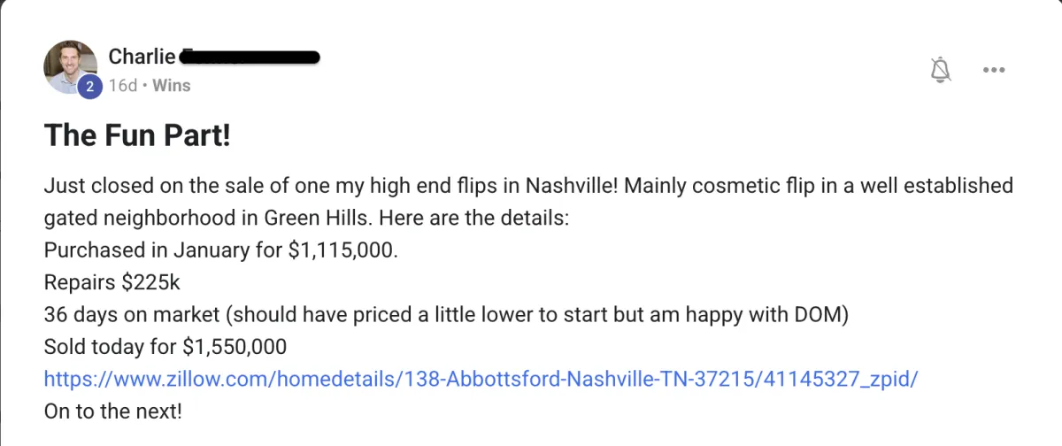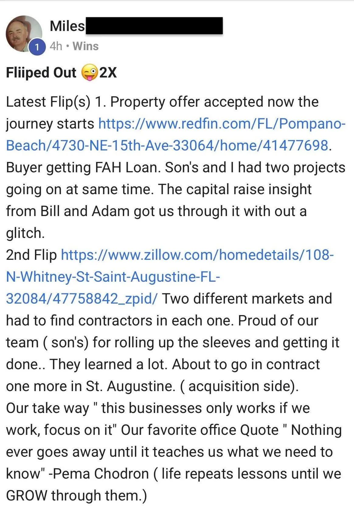 ✅ Built a high-level mastermind of 348 real estate investors who have bought & sold over 1,000 properties, with a combined value of over $1 billion.